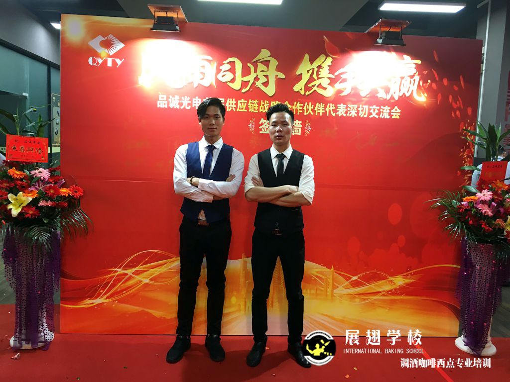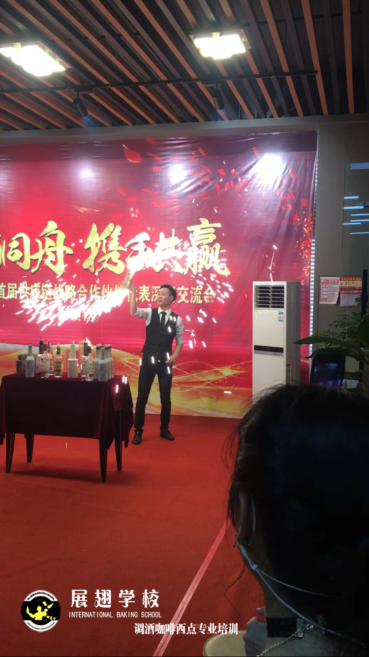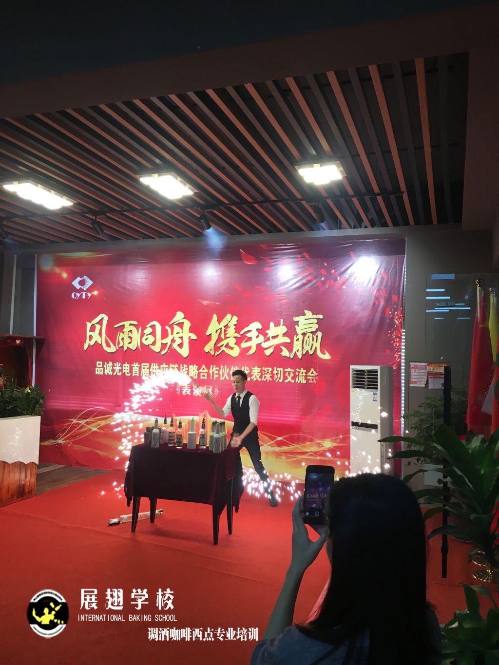 <佛山展翅調酒咖啡西點培訓學校>調酒師朱歡洪&謝克朗受邀出席中山品誠光電交談會,并擔任活動現場花式調酒演出嘉賓。如果你想成為一名優秀的花式調酒師,要不斷的實踐、學習、讓自己擁有更豐富的技能知識http://m.anhuicc.com.cn