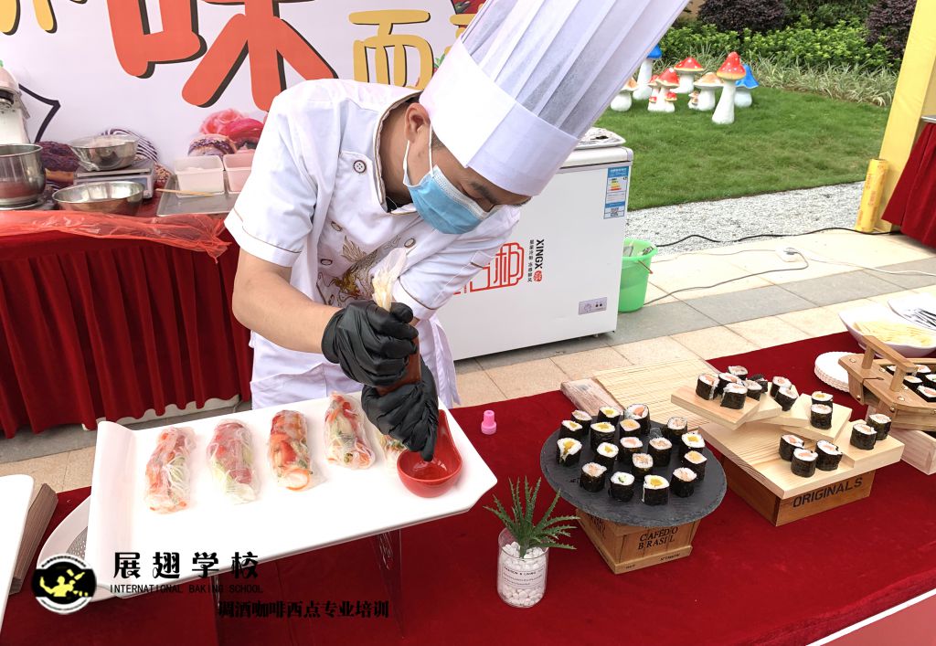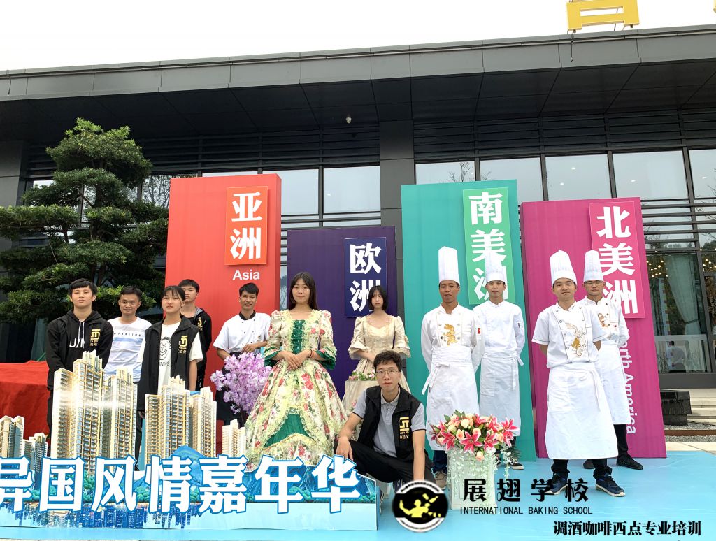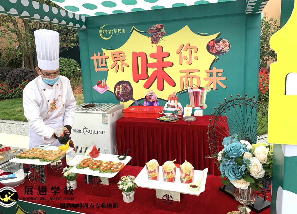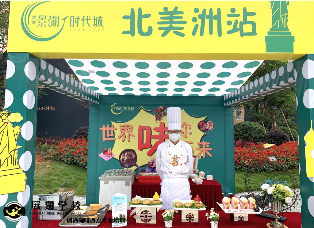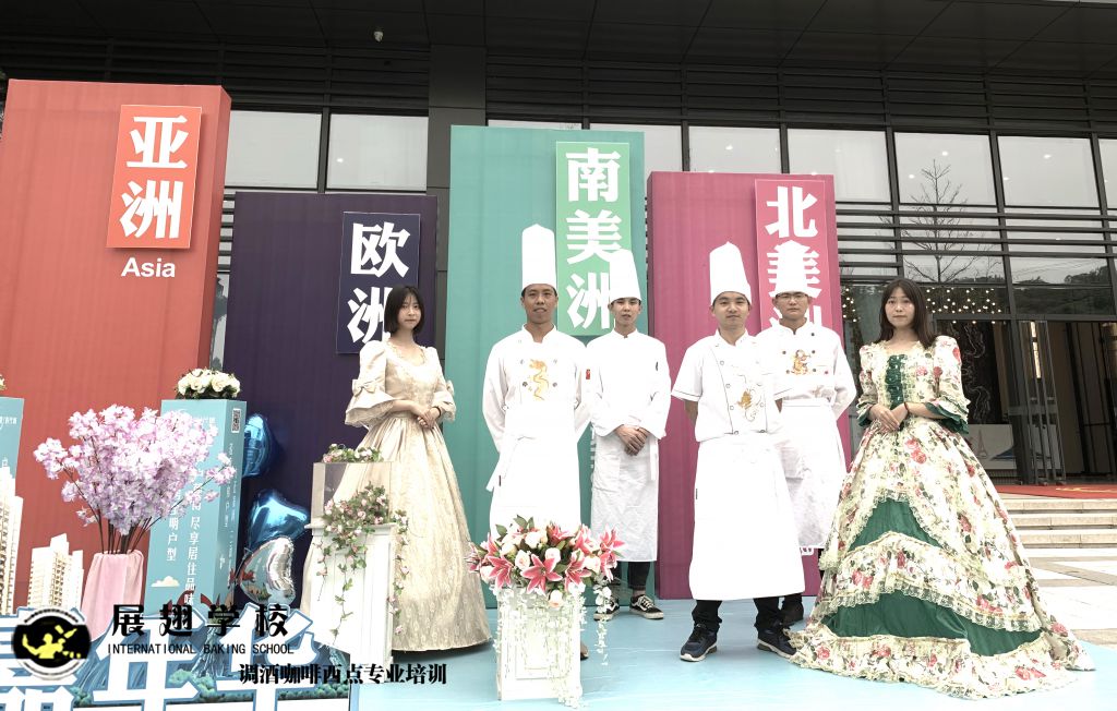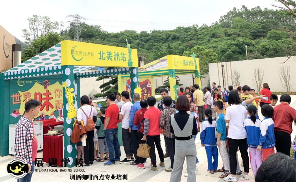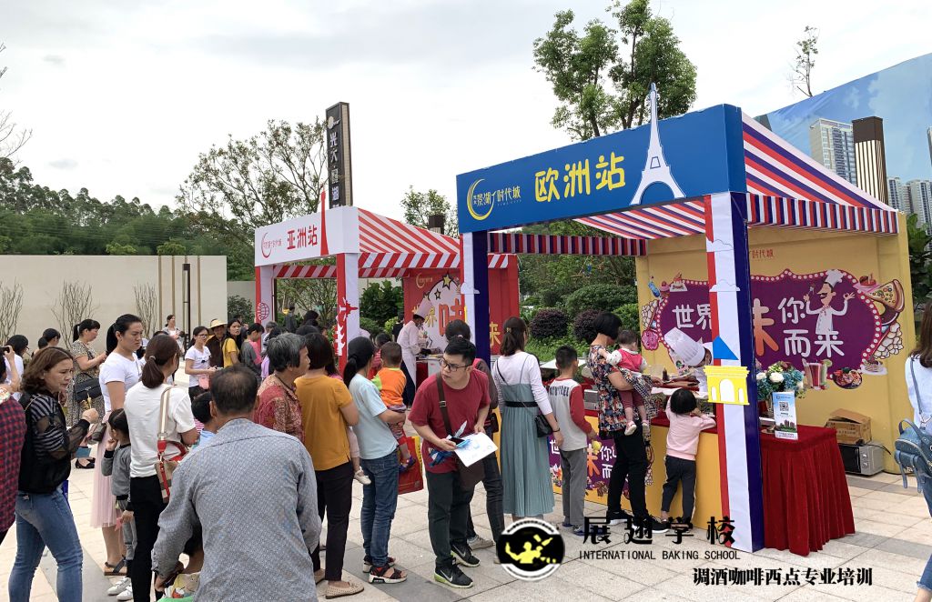 光大地產(chǎn)-云浮景湖時代城 五一異國風情嘉年華展翅調(diào)酒咖啡西點培訓學校學員糕點戶外實踐,這樣可以檢驗學員這段時間以來的學習成果,還能讓學員親自體驗下西點服務行業(yè)的工作,還能提升自己的技術(shù)和能力。